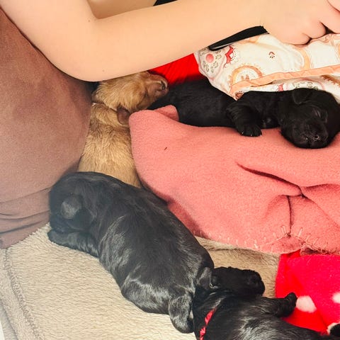 De vil modtage et tæppe med deres forældres duft, legetøj og foder til de første par dage i nye hjem. Vi opkræver 2.500 DKK for hvalpereservationer.
