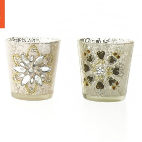 Smukke lysestager i facetslebet glas med en fin rosé/antikrosa tone. Glassets mønstrede overflade giver et flot spil i lyset og skaber en varm og stemningsfuld atmosfære, når stearinlyset er tændt.
