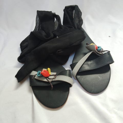 Sandaler med frynser og ædelsten, Farve sort, Størelse 38, lidt brugt