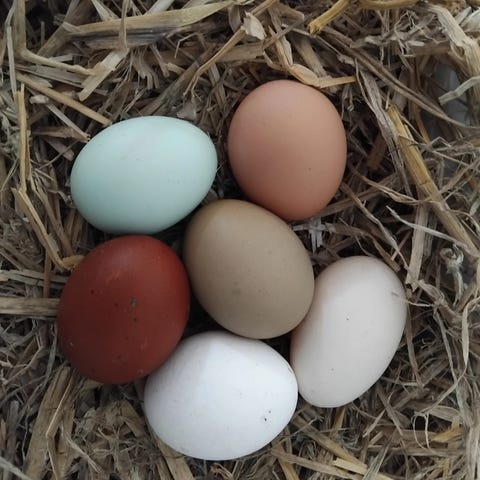 Mine høner er en smuk blanding af de store racer, kobber Maran, Sussex, EA, wyandotte og Orpington.