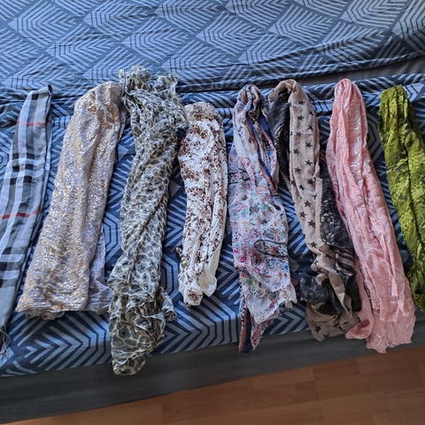 Tørklæder i forskellige størrelser, nogle af dem helt nye 10 kr pr stk