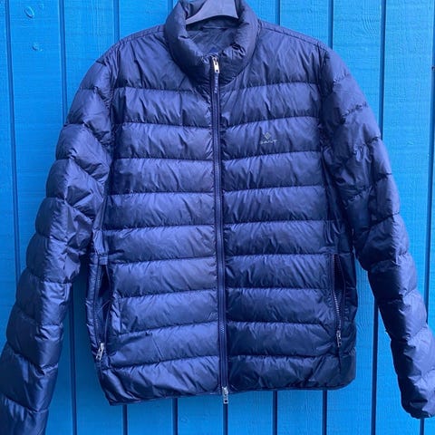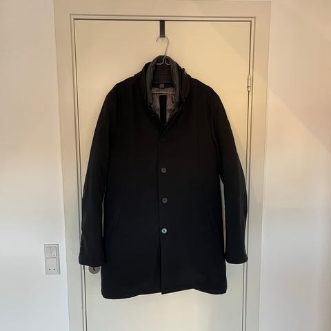 Str 54 med originale Dunhill knapper. Britisk luksus. Knaphuller på ærmerne kan åbnes. Den er mørkeblå og knapper i stål. Kom med et bud.