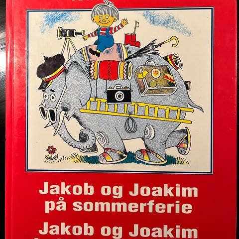 Jakob og Joakim holder fødselsdag. Af Jørgen Clevin. Hardback. Billedbog i stort format. Farveillustrationer. Gyldendal, 1976. Pænt eksemplar