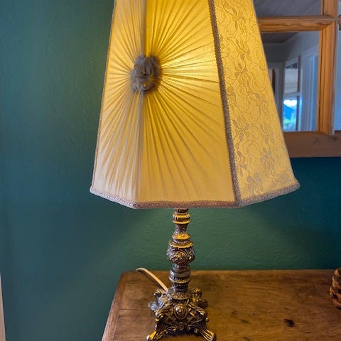 Bordlampe vintage med blomster og afbryder