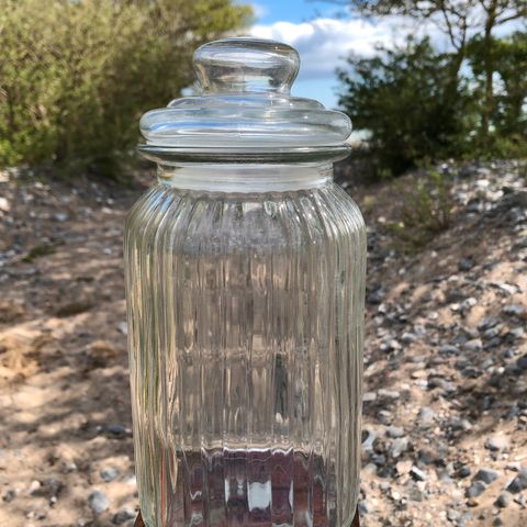 Største antikke fra Holmegaard/Kastrup glasværk på 2 L til 199,- på H: 22 x : 12 cm med låg