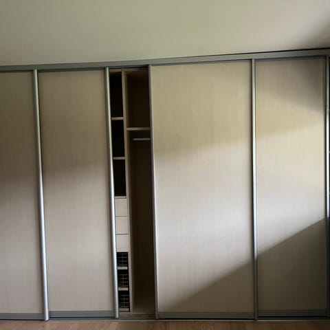 2 stk. System 8000 “mocca” farvede gulv til loft skydelåger/døre i super fin stand, købt i Bauhaus.