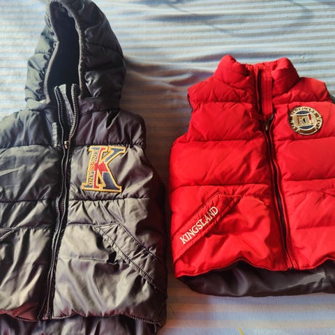 Kingsland veste. Den ene grå og den anden blå. Begge med hætter. Ældre men i god stand. Str. 98/104