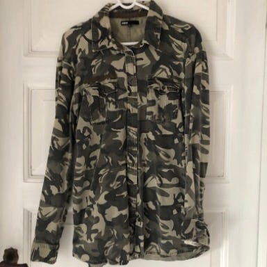 Virkelig pæn og let skjorte med dyreprint i grå/sorte farver, og en del rhinsten på forsiden. Fantastisk spil i.