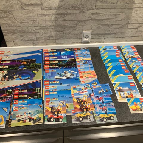 Rigtig mange retro lego byggevejledninger til sæt fra 1970-1990’erne. Se alle billederne.
