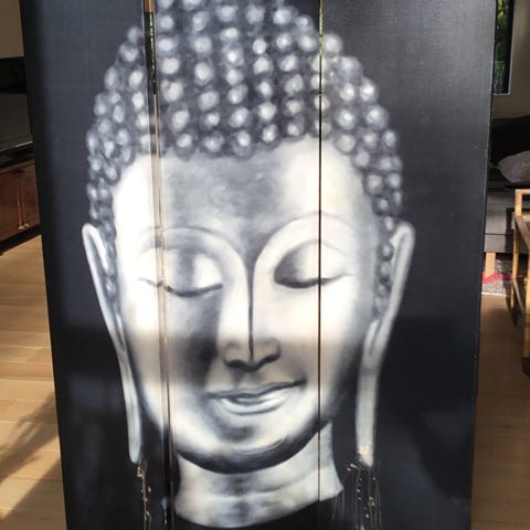 Folde væg i tre fag. Skåret ud af MDF og malet.