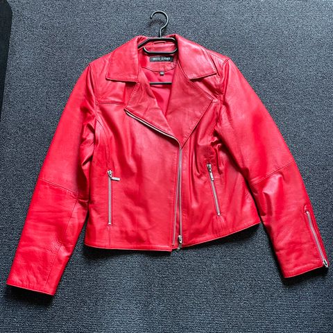 Lækker, blød, rød skindjakke/læderjakke med patina uden synligt slid
