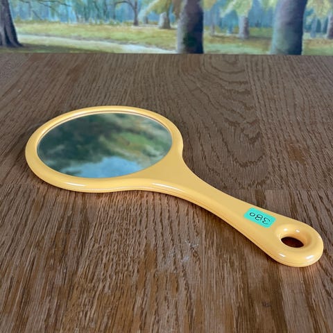 Fin gammel håndspejl med rose, antagelig i pletsølv.