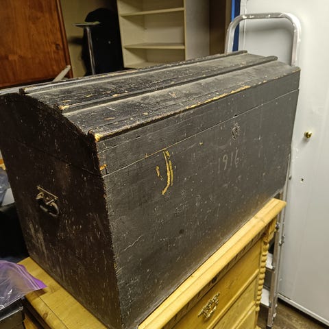 Kiste, b: 130 d: 60 h: 75, Gl svensk kiste med mere end 80 år på bagen…