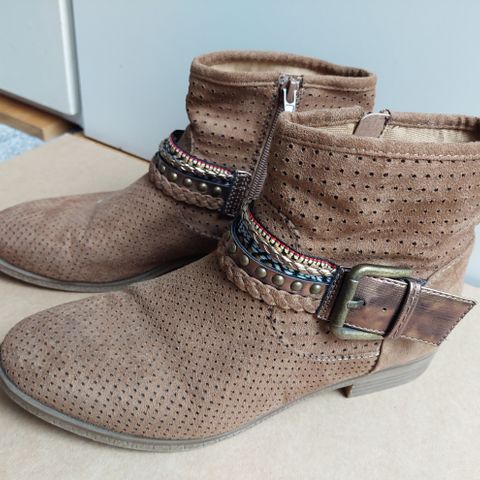 Sorte i "ruskindslook" med lynlås bagpå og fint hulmønster op ad anklen. Ikke brugt ret meget. Befinder sig mellem Aabenraa og Sønderborg. Kan sendes.
