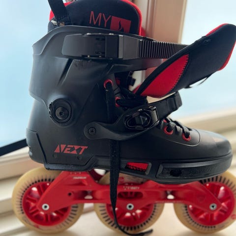 Next Renegade rulleskøjter. Brugt få gange. Extra hjul og pumpe medfølger.størrelse 44/45 Nypris 3200. Sælges for 2100
