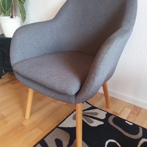 Flot tre stoler og rund bord , stoler er kendt mærke fra Danmark, flot stand kan dreje og automatisk tilbage igen , bord har nogle lille overfladet huller som kan behandles / males mm eller sæt en dug eller som den er flot ,men den er stabil tung ,