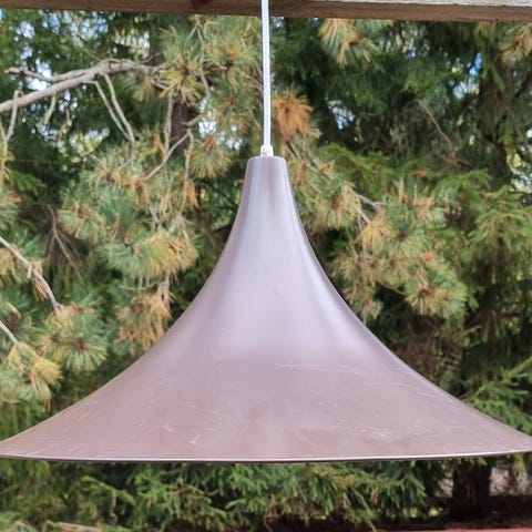 Trompet lampen : Riboli fra Lyskær Ø 45 cm hvid klar kant m/tynde hvide striber.