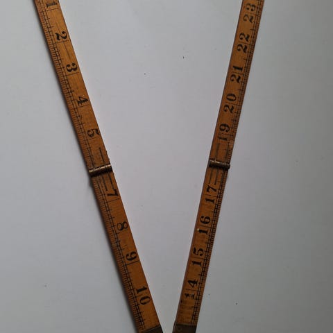 Værktøj, Gammel tommestok, Med tysk reklame Gebr. Feuerborn KG Spexard & Gülersloh Ruf 5458. (1888)