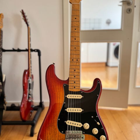Sjælden og udgået Fender Buddy Guy signature 2008 Stratocaster i 2-color sunburst. Guitaren fremstår som ny i fuldstændig mint condition med alt tilbehør. Guitaren blev produceret fra 1995-2009 og er bl.a. udstyret med en mid boost control (0-25dB). Pickups: 3 Gold Fender Lace Sensor Strat.