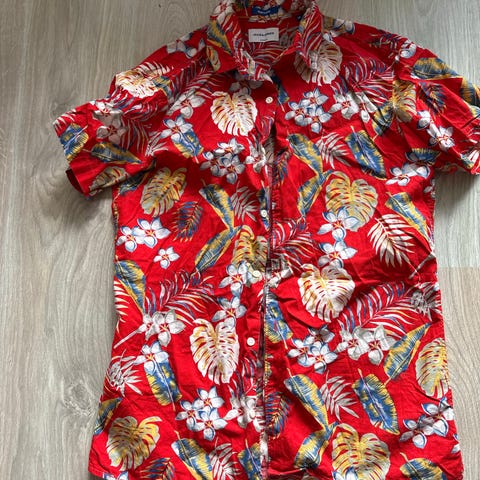 Sommerskjorte med palmer og blomster.
