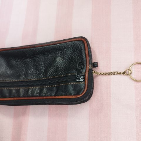 Pung i lækkert blødt skind med lynlås i fin stand, cirka 10 × 5 cm med mulighed for at have en nøgle fastnet så den faktisk også fungerer som nøglerIng