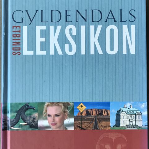 Omfattende leksikon, Hardback, Gyldendal, 2003, ialt 1097 sider.