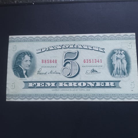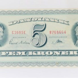 Dansk 5 kr. seddel fra 1960. Kvalitet 1+