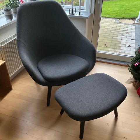 Hay, AAL92, Lænestol, Velholdt loungestol i flot mørkegrå stof fra Kvadrat og ben i egetræ.