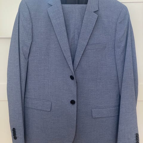 Et velour jakkesæt fra H&M. Aldrig brugt. Buks og jakke i Størrelse 44. Smal pasform. Rust farvet. Passer til en ung knægt der er 165-170 i højden og er slank