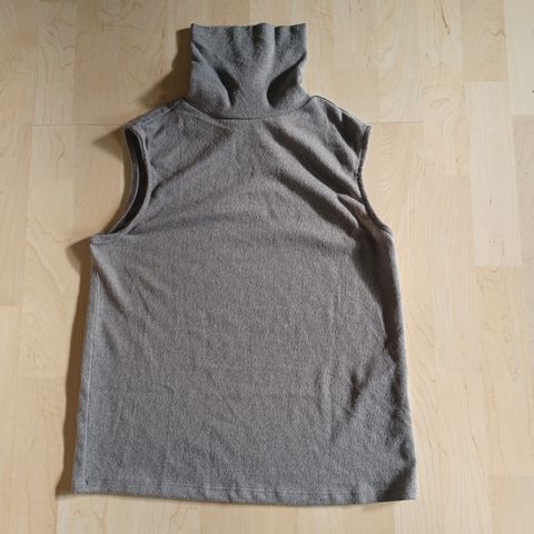 Dejlig blød ærmeløs top med rullekrave. Længde fra nakken og ned 58 cm. Fin stand. Har samme model i grå. Køb begge for 60 kr.