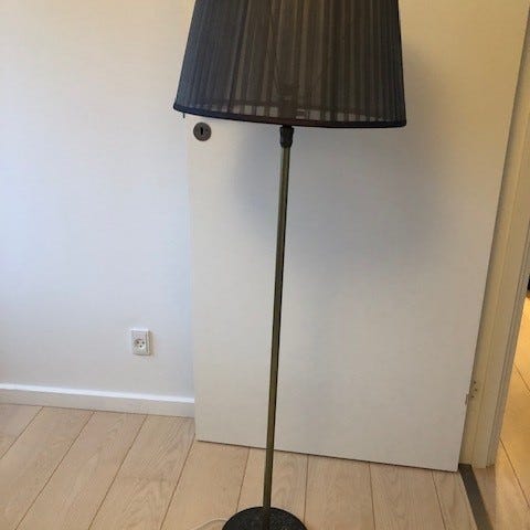 Retro standerlampe i metal og messing der kan justeres i højden.