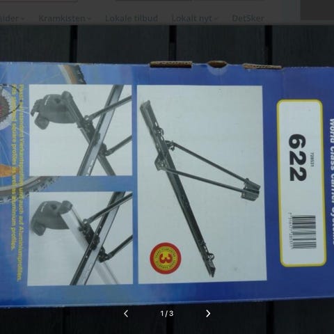 Tre cykelholdere til montering på bilens tagbøjler.