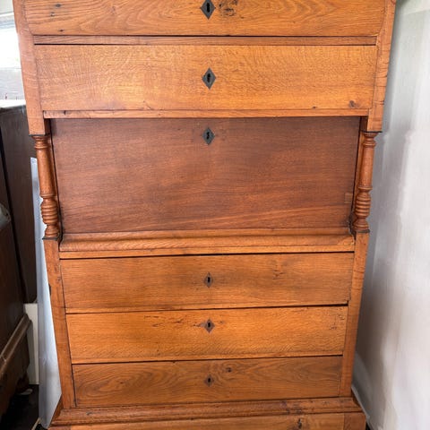 Pænt møbel i fyrretræ. Lidt mærket på skriveplade.(kan slibes) ellers fin stand.