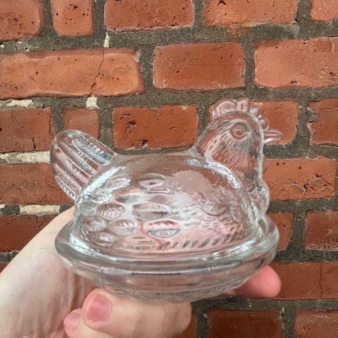Påskehøns 2 stk. syet i patchwork i gul med grøn prikket vinger, kam og næb. Mål 15 høj x 10 cm bred fra næb til hale. 50 kr. for dem begge. Helt ny – aldrig brugt.