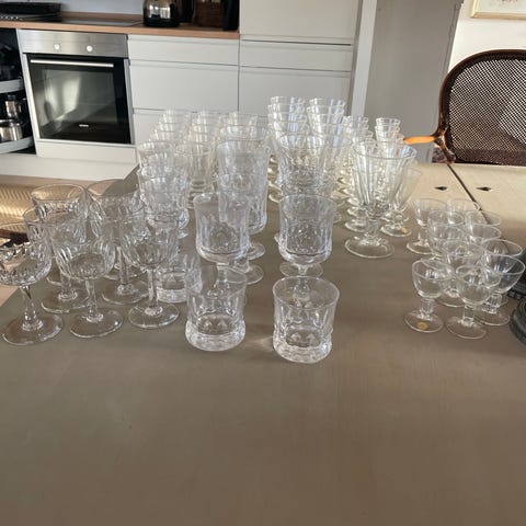 7 krystal glas ca 16,5 cm høje hele og fine 1 ekstra kan følge med med lille skår.