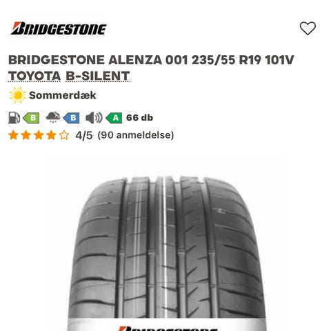 4 stk. nye Bridgestone Alenza 001 B-Silent sommerdæk str. 235/55x19 101v. Har kørt 2 uger i november 2024 på min Nissan Ariya. ca. 400 km. Dækkene er produceret i uge 24 i 2024. Billigste pris online er 1287 kr. Pr. dæk.