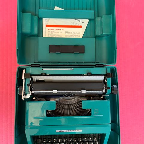 Skrivemaskine Olivetti PT 505 sælges. Maskinen er testet og fungerer perfekt – der er skrevet en testlinje som ses på billedet. Elegant og klassisk design fra Olivetti, der kombinerer brugervenlighed med pålidelig teknologi. Den har dansk tastatur med æ, ø og å samt flere smarte funktioner såsom automatisk margin og korrekturknap. Strømkabel og låg medfølger.