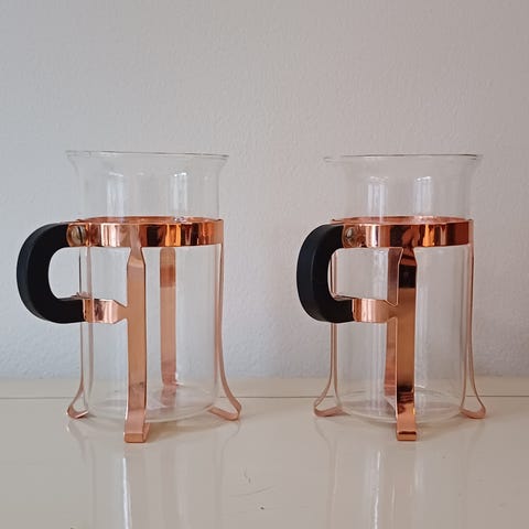 To super flotte hot-glas i kobber fra Bodum sælges. De er aldrig brugt, og jeg håber, der er en anden der kan få glæde af dem.