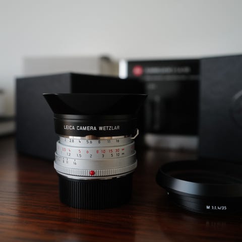 Objektiv i meget god stand med meget få brugsspor. Tilset af Leica i Wetzlar juli 2022 (dokumentation herpå medfølger). Inkl. original Leica UV-filter.