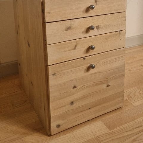 Der medfølger en enkelt hylde i samme bredde. Disse fås dog stadig i butikken. På undersiden små mærker efter søm, da vi havde en led-stribe placeret her.
