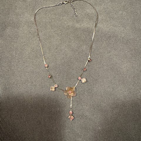 Halskæde med hjerter og lilla sten ikke ægte noget som helst, men virkelig smuk.
