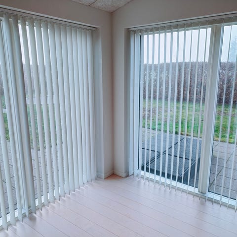 Specialtilpassede lamelgardiner, af mærket Kirsch fra Gardinbussen.