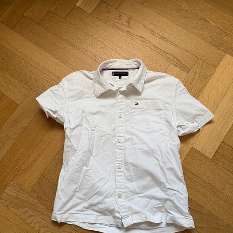 Super flot helt klassisk hvid skjorte i størrelse 8-10 år fra Tommy Hilfiger. Brugt meget begrænset af en dreng. Skal selvfølgelig lige stryges. Sender gerne