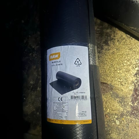 Murfolie, Vi har murfolie i forskellige bredder. Sælges til halv pris . Eks. 60 cm x 25 m . Sælges til 120 kr. samt 60 cm x 50 meter. Ny pris 320,-..Sælges 200,-