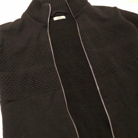 Mads Nørgaards all time klassiker, strikcardiganen Wool Klemens Zip knit af 100% uld. Den helt originale med dobbelt lynlås. Som ny.