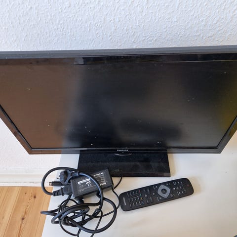 Lille tv til vægophæng. Mangler beslag. Brugt meget lidt, har stået i sommerhus.