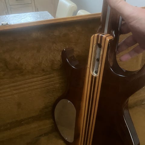 Bassen er en sjælden model fra de glade tressere: Den har bl.a. anderledes udskæringer i klangkassen end andre Klira Twen Star-basser fra samme periode.