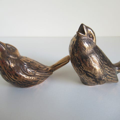 To forsølvede papegøjer med lange haler, længde 44,hø’jde 22 cm sælges samlet for 500 kr. Intet at bemærke. Nordvestsjælland eller København K.