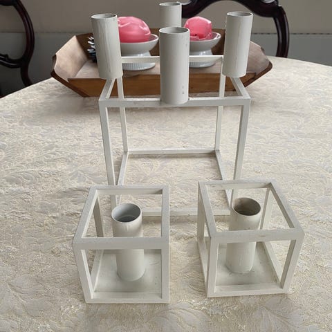 Hvid enkelt Kubus lysestage. Brugt, men i god stand