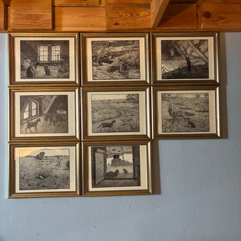 6 illustrationer af den fynske maler Johannes Larsen til “Historien om lille mis” (Christen Cold) er nu til salg.